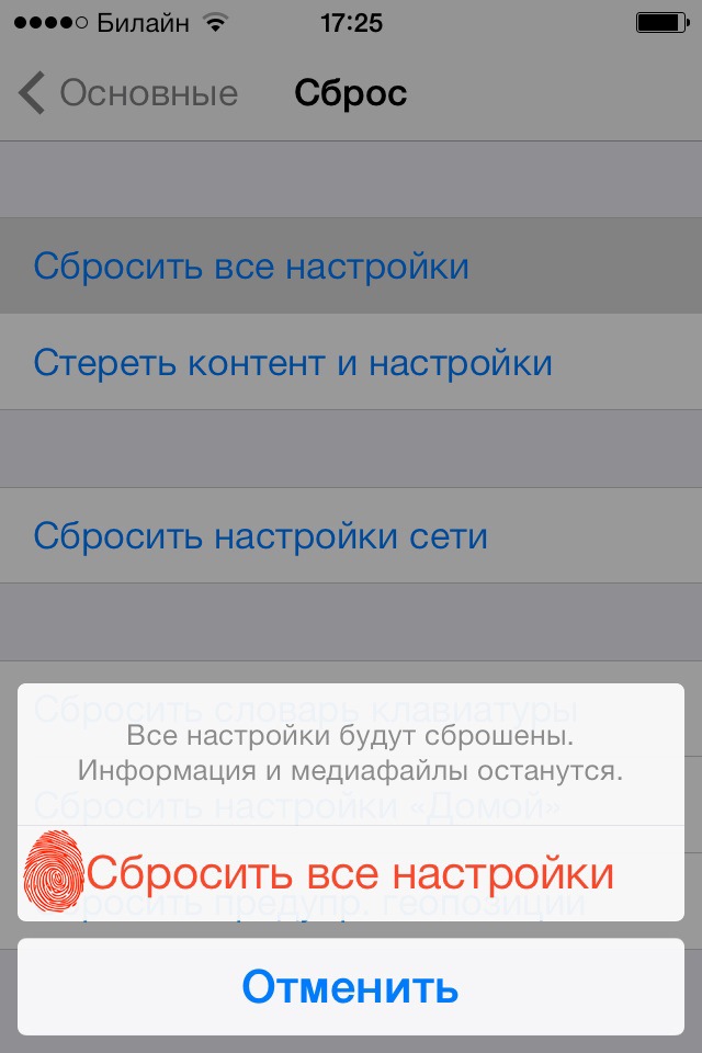 Обращаем внимание владельцев iPhone с джейлбрейком — сброс настроек на взломанном устройстве приведет к «вечной загрузке», поэтому эту операцию не стоит проводить.