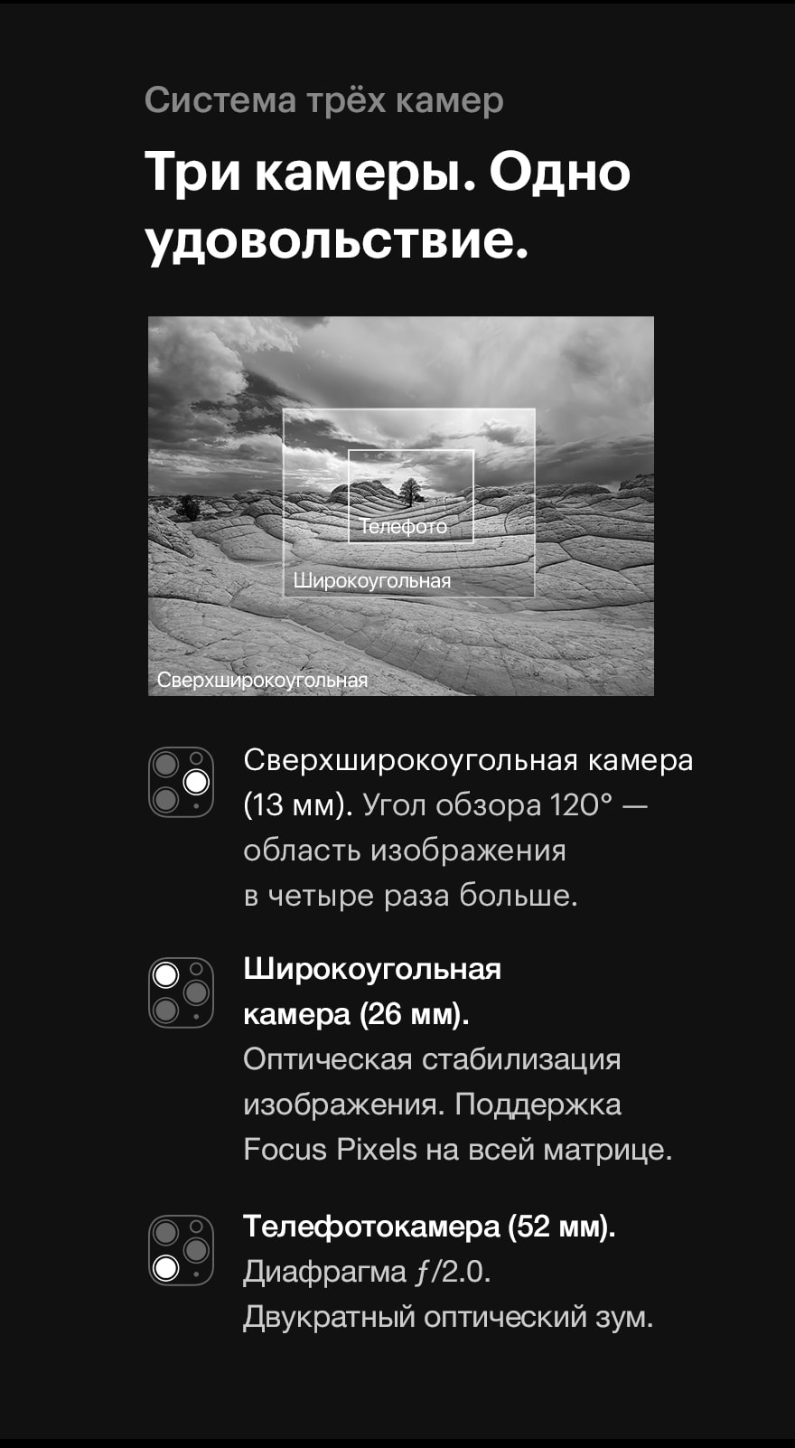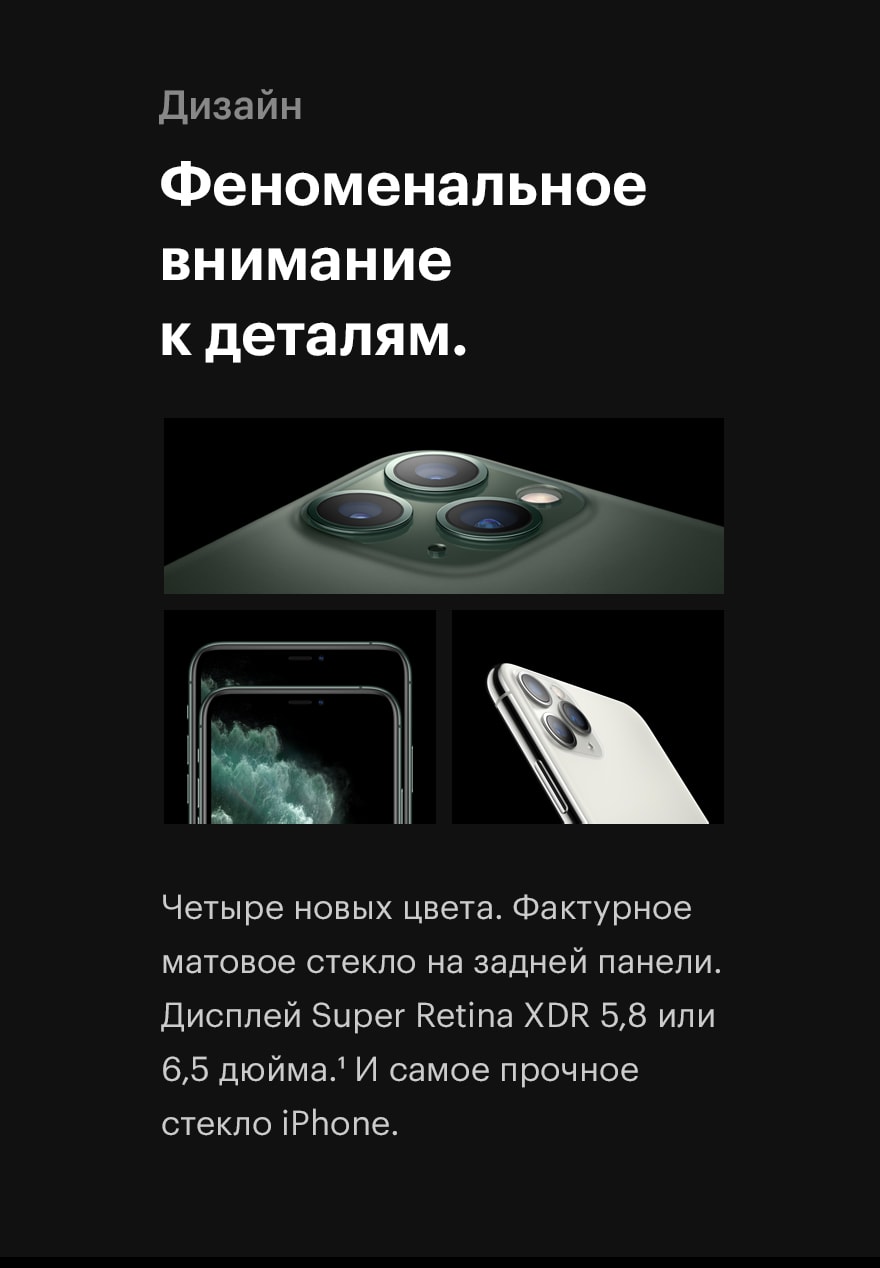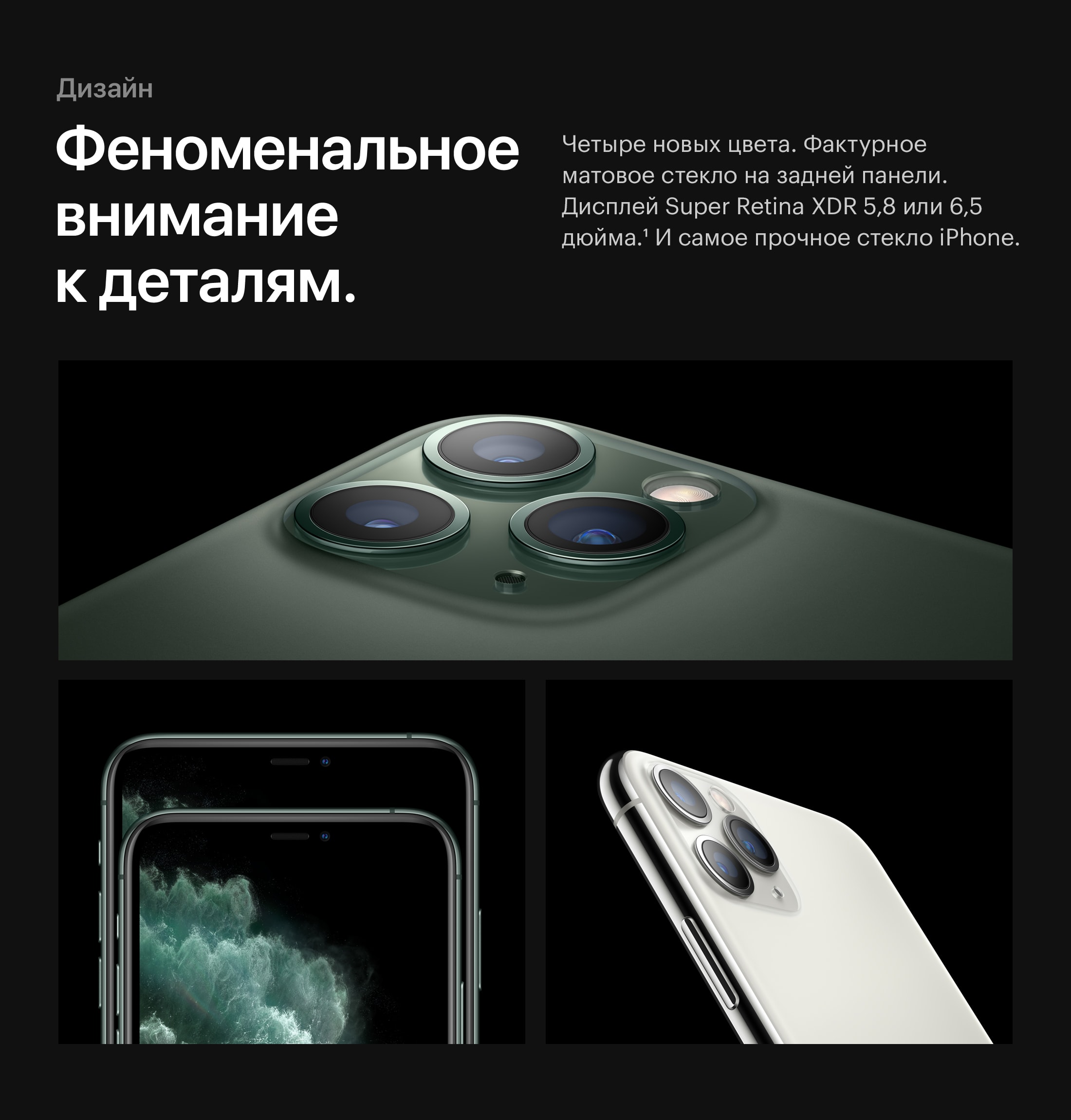 1. Дисплей представляет собой прямоугольник с закруглёнными углами. Диагональ этого прямоугольника без учёта закруглений составляет 5,85 дюйма (для iPhone 11 Pro), 6,46 дюйма (для iPhone 11 Pro Max) или 6,06 дюйма (для iPhone 11). Фактическая область просмотра меньше.