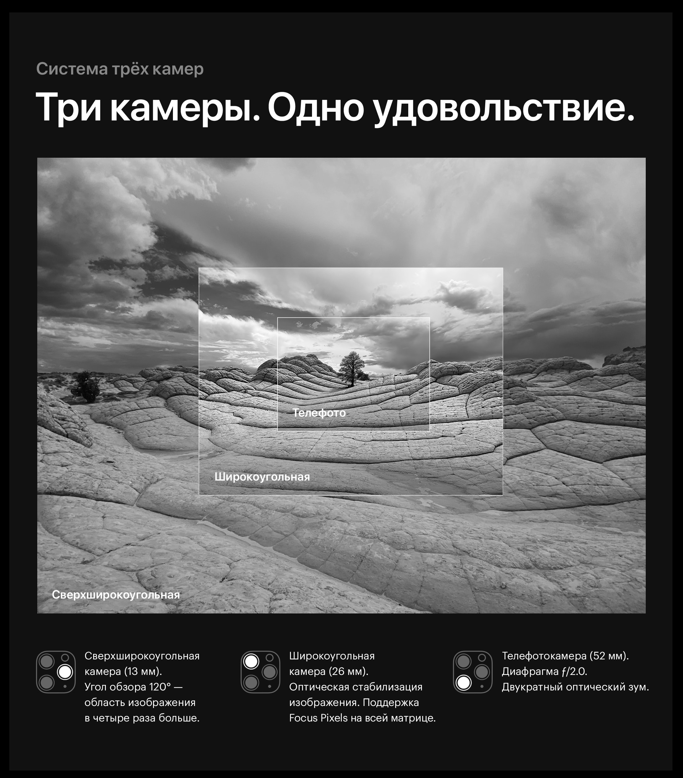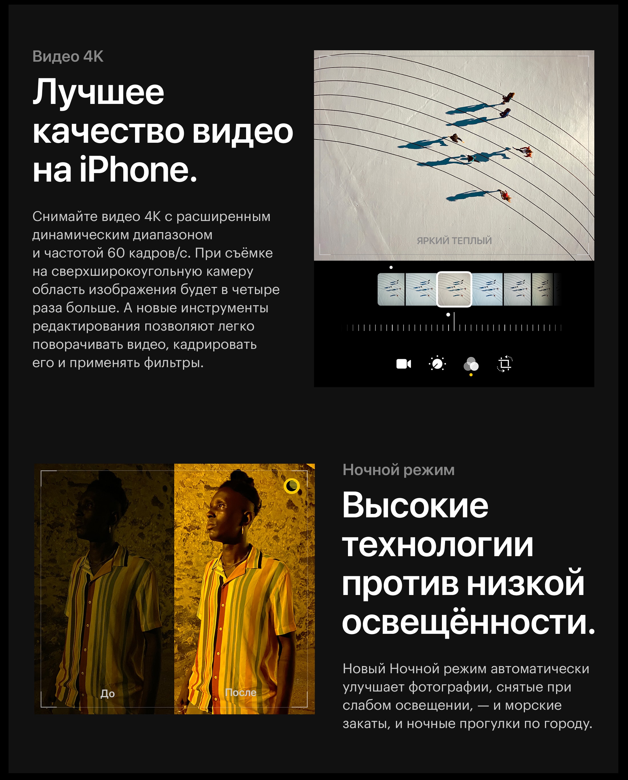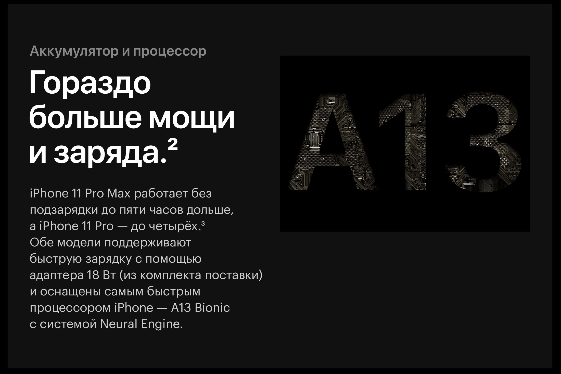 2. Время работы от аккумулятора зависит от настроек и характера использования устройства. Подробнее на странице apple.com/ru/batteries.