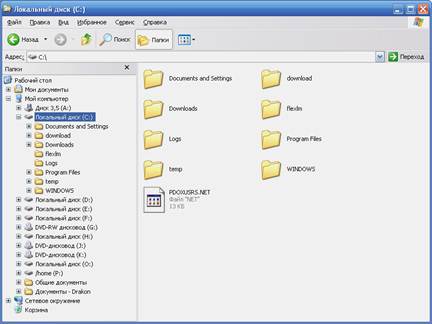 Рис. 1.2. Интерфейс файлового менеджера Проводник Windows