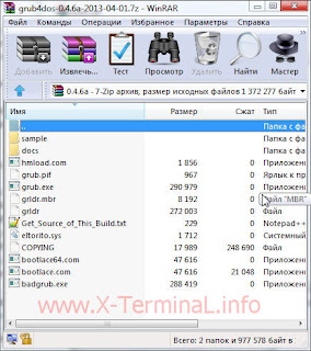 Это сам Загрузчик Grub4Dos и всё необходимое для его установки. Скачиваем, распаковываем архив.