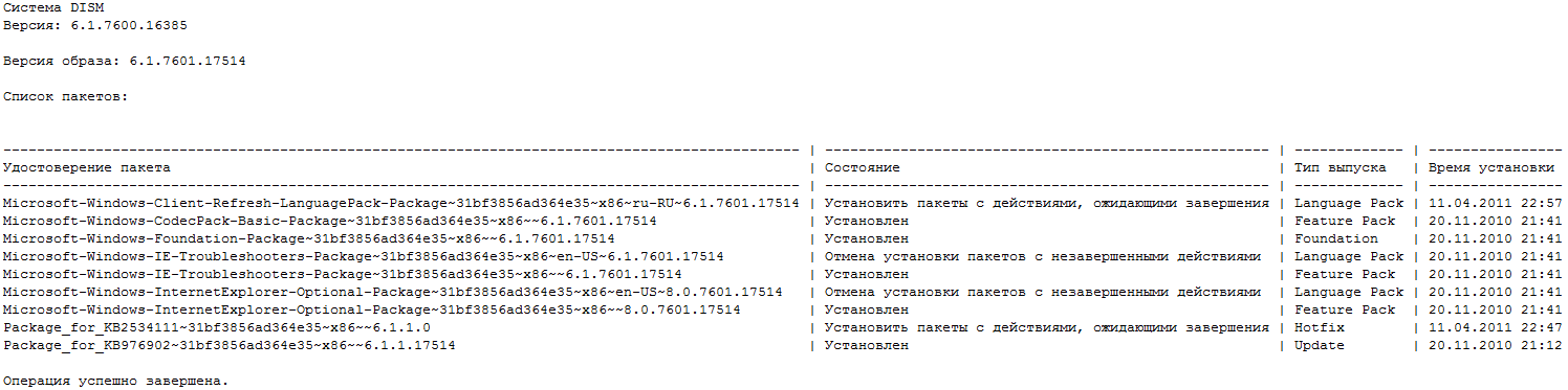 9. Посмотрим какие пакеты у нас содержатся в редакции Starter (первый индекс) после интеграции обновлений. Используем команды указанные в шаге 3.
