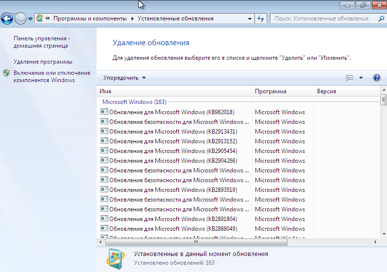 Установку этот образ успешно прошел. В результате мы имеем уже установленные 163 обновления/исправления о чем говорит соответствующее окно: