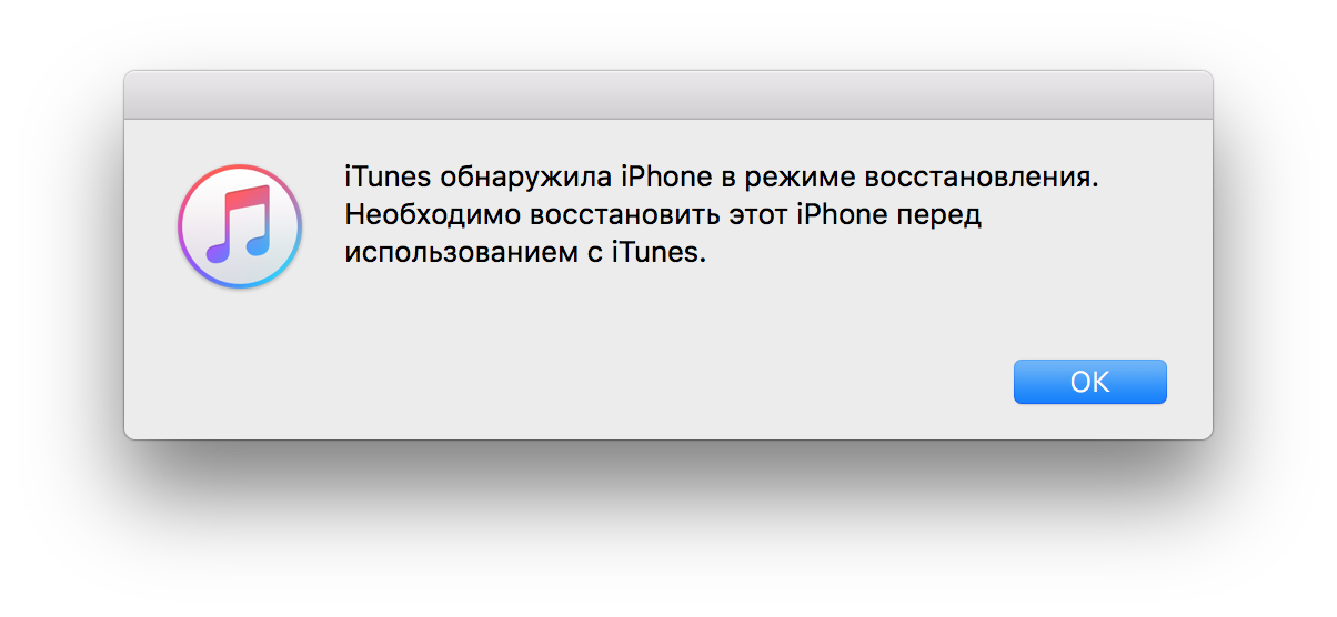 iTunes обнаружила iPad/iPhone/iPod в режиме восстановления. Необходимо восстановить этот iPad/iPhone iPod перед использованием с iTunes.