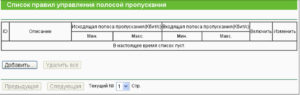 - После этого необходимо во вкладке Bandwidth control, или «Пропускная способность», создать правило для каждого IP. При создании нового указывается IP и фильтр для него, в нашем случае — максимальная скорость для входящего и исходящего трафиков.