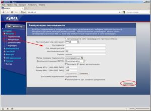 При подключении роутера Zyxel к этому провайдеру следует выполнить подсоединение по протоколу PPPoE. Для этого в веб-интерфейсе необходимо зайти в раздел «Интернет». Там выбрать подраздел «Подключение». В разделе «Настройки параметров IP» выбрать пункт «Без IP адреса» и нажать «Применить».