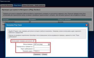 После установки галочки в разделе «Интернет» появляется вкладка Ping Checker. Если нажать на нее, появляется список подключений. При выборе любого из них откроются «Настройки опции». Следует выставить интервал проверки в секундах, и количество неудачных проверок. Рекомендуемое значение — 3. После этого постоянно будет проводиться проверка сети. Если достигается требуемое число отказов, автоматически пройдет переключение на резервную сеть.