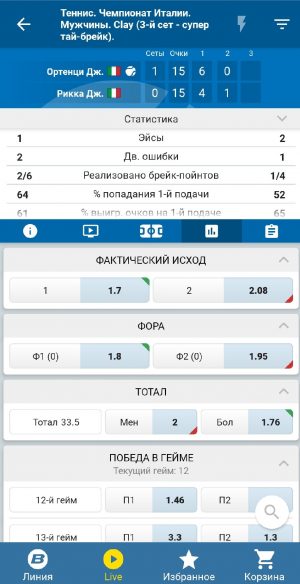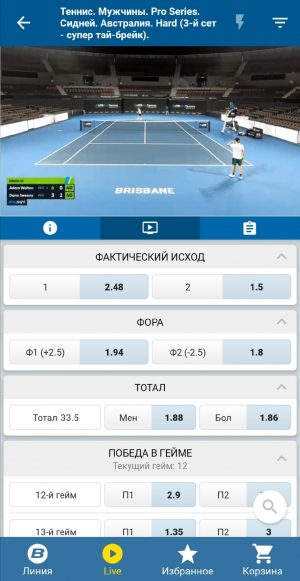 В версии для iOS, как и в других приложениях, нельзя просматривать видеотрансляции. Матч-центр в целом реализован крайне минималистично: здесь нет инфографики, и можно следить только за изменениями счета и коэффициентов. Последние, правда, подсвечиваются в зависимости от того, вверх они идут или вниз. Кроме того, в приложении отсутствует поиск по названиям команд и именам спортсменов.