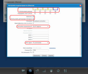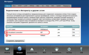 В главном меню интерфейса выбирается значок «Интернет» (глобус). В открывшемся меню нажимаем на вкладку «Подключение», где находим пункт Broadband Connection и кликаем по нему.