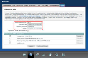 Вход в настройки осуществляется при раскрытии раздела «Интернет» и последующем нажатии на вкладку DyDNS. После заключения договора на сайте сервера пользователь заполняет соответствующие поля открывшейся страницы.