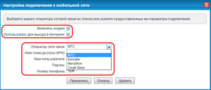 Для работы с оператором во вкладке «Список» с последующим переходом к созданию соединения Broadband Connection контролируем установку маркеров в пунктах: