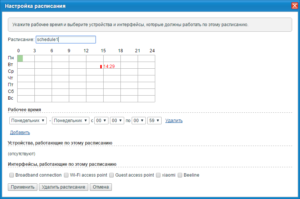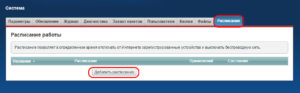 Эта функция по большей части является контролем начальника за своими работниками в локальных сетях, руководимых ими подразделениях для создания расписания работы ее участников. Кроме того, здесь существует фильтр для разрешенных к подключению устройств. Настройка этого параметра в Keenetic Giga производится в разделе «Система» главной страницы интерфейса и переходе во вкладку «Расписание».