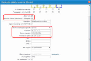 Кроме соединения формата PPPoE оператор предоставляет абонентам оплаченный на основании договора выделенный статический IP и соединение типа «Динамический IP». PPPoE был рассмотрен выше. Статический IP-адрес выделяется, в основном, корпоративным клиентам компаний по запросам организаций. В этом случае в настройках добавляется информация о назначенном адресе, маске подсети провайдера и шлюзе по умолчанию.