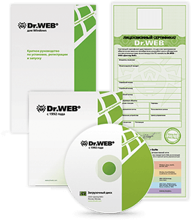 - Лицензионный сертификат Dr.Web c серийными номерами (зависит от комплектации коробки). Установочный DVD-диск (boot-disk) в фирменном конверте * . Книжка «Краткое руководство по установке и регистрации» на русском языке. Наклейка «Защищено Dr.Web».