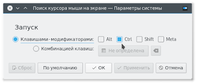 В настройках эффекта Поиск курсора мыши на экране (средний значок справа) можно выбрать клавишу на своё усмотрение: