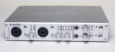 Для профессионалов подойдет Firewire 410, которая рассчитана на подключение внешних синтезаторов, MIDI-клавиатур, студийных мониторов, профессиональных наушников и микрофонов. Профессиональная звуковая карта M-Audio Firewire 410 спроектирована с учетом студийного использования. Ориентация на профессионалов предполагает наличие MIDI-интерфейса, микрофонных предварительных усилителей и разъемов XLR, коаксиального и оптического цифровых входов/выходов, выходов на наушники с регулятором уровня, монофонических аналоговых разъемов большой джек для 8 аналоговых выходов (7.1).