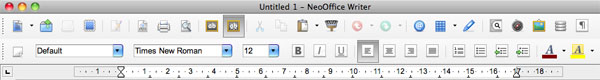 Интерфейс NeoOffice напоминает нам в первую очередь Microsoft Office 2003. Причем гораздо больше, чем Microsoft Office 2008! Радость узнавания усилена тем, что все самые необходимые элементы сразу видны: вот они, под рукой! Сравните «шапки» Microsoft Word 2003 (сверху) и NeoOffice Writer 3 (снизу).