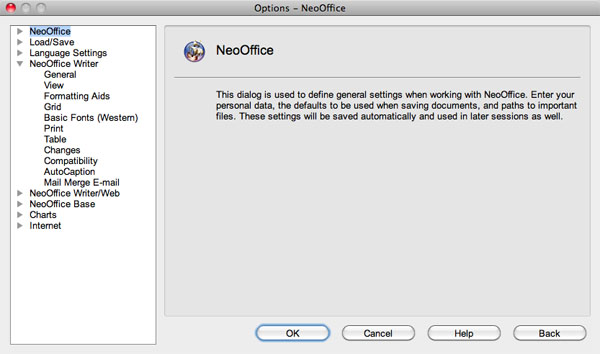 Также стоит обратить внимание на возможность тонкой настройки через меню NeoOffice / Settings. Интерфейс, кстати, здесь тоже «виндусообразный».