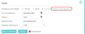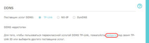 Справа находится выбор одного из поставщиков услуги: TP-Link, NO-IP или DynDNS: