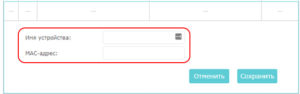 Клиент вводит имя оборудования, по которому его будет идентифицировать «операционка» роутера Archer AC1350. Оно может быть произвольным, так как несет только справочную информацию. В следующей строке вводим физический адрес устройства, которому будет разрешен доступ к сети роутера C60. После нажатия «Сохранить» оно добавится к «белому» списку.