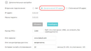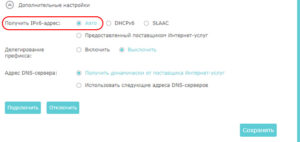 Вторая часть содержит расширенные настройки функционала провайдера. Адреса IP и DNS оставляем на динамическом режиме. Режим подсоединения – «Авто». После этого нажимаем «Подключить» и сохраняем изменения.