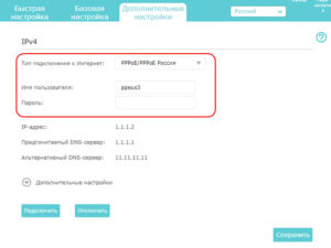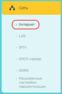 Рассмотрим, как провести конфигурирование модели C60 в ручном режиме. На главном окне Archer выбираем вкладку «Дополнительные настройки». Слева откроется меню, где переходим на раздел «Интернет»:
