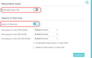 Сетевое устройство поколения Archer модели C60 обладает встроенной защитой от сетевых атак. Ее параметры расположены в разделе «Защита». Он подразделяется на три категории: