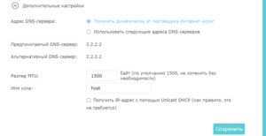 Во второй части идет настройка вторичного соединения с сетью «Интернет», используя встроенное ПО маршрутизатора Archer. Выставляем настройки как показано на скриншоте выше. Далее нажимаем «Сохранить».