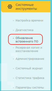 Заходим в главное меню устройства, выбираем вкладку «Системные инструменты», подраздел «Обновление встроенного ПО»: