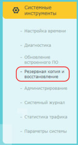 Прежде чем выполнять какие-либо изменения в конфигурации маршрутизатора C60, следует выполнить резервное копирование данных. Заходим во вкладку «Системные инструменты», подраздел «Резервная копия»: