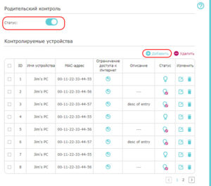 По умолчанию, данная опция включена. Далее идет список устройств, которым заблокирован доступ во внешнюю сеть: