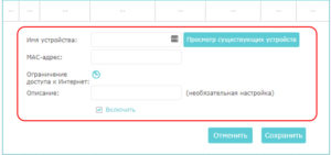 - MAC-адрес – вводится физический адрес оборудования, которому необходимо ограничить доступ в «мировую паутину».