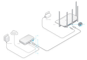 Прежде чем выполнять первичную настройку роутера TP-Link Archer C60, необходимо его подготовить. Подключаем кабель питания в розетку, а сетевой шнур от провайдера – в порт WAN. Далее надо подсоединить к роутеру Archer оборудование, с которого будет производиться настройка подключения к сети «Интернет». Например, ноутбук.