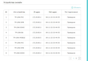 В соответствии с физическим адресом клиентской машине будет назначен «айпи» от встроенного DHCP-сервера роутера Archer AC1350. В первой таблице представлен список активных соединений,