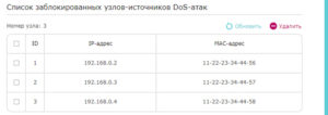 Указывается порядковый номер, IP-адрес и физический адрес, с которых производилась DOS-атака.