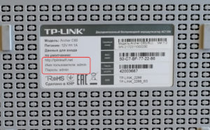 Конфигурирование маршрутизатора Archer AC1350 производится через веб-интерфейс устройства. Чтобы узнать его адрес, смотрим на оборотной стороне: