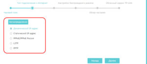 На следующем этапе требуется указать тип подключения, используемый поставщиком услуг. Если пользователь сомневается или не знает, какая именно технология, нажимаем на «Автоопределение». Операционная система роутера Archer модели C60 самостоятельно определит тип подключения, и выберет соответствующий параметр: