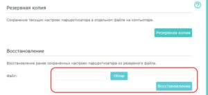 Если необходимо восстановить предыдущий «конфиг», выбираем подраздел «Восстановление». Указываем путь к сохраненному ранее файлу и проводим операцию восстановления.