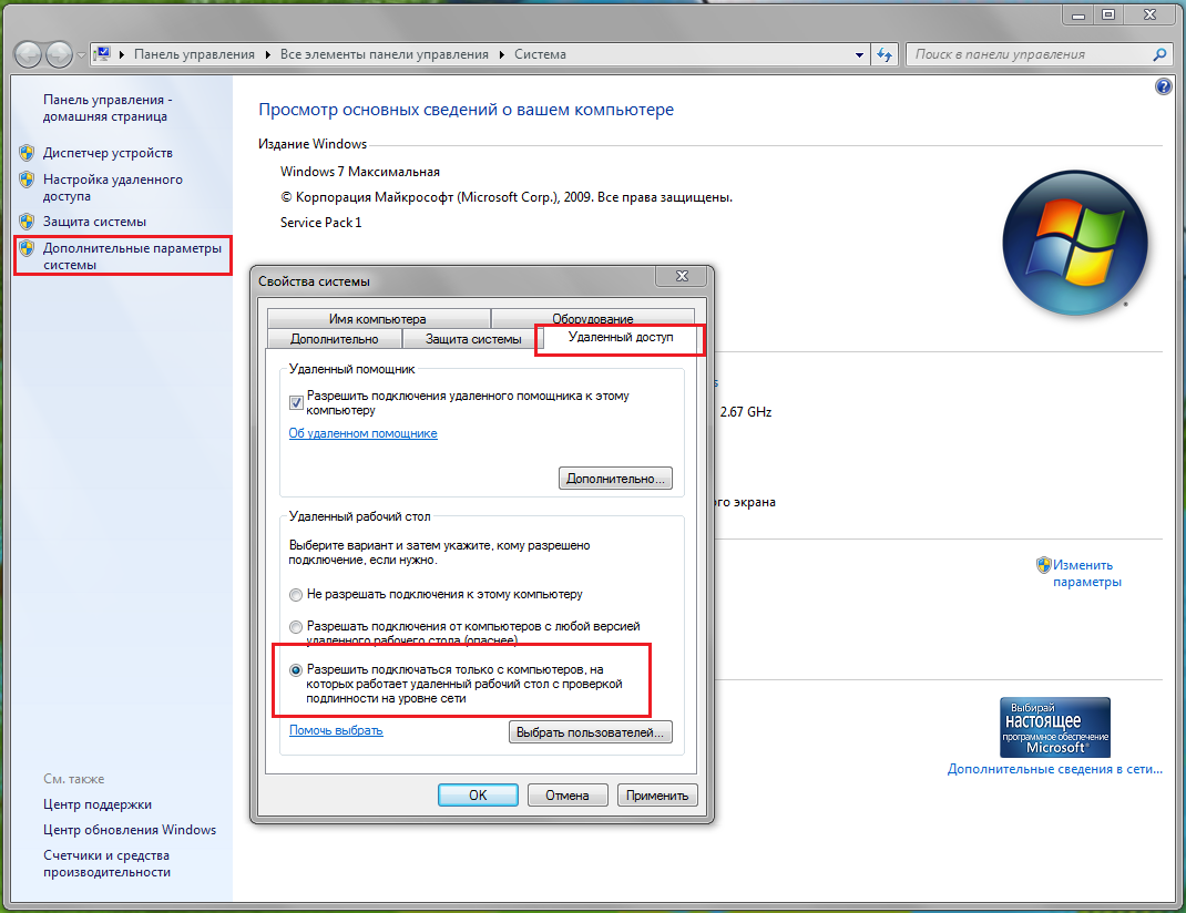 Панель управления -> Система -> Дополнительные параметры системы -> Удалённый доступ -> «Разрешить подключаться только с компьютеров, на которых работает удаленный рабочий стол с проверкой подлинности на уровне сети»