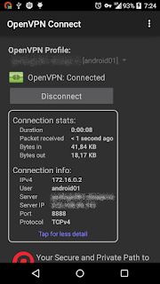 Т.о. мы получаем что при использовании tun-адаптера local и remote address должны быть из одной подсети /30, так, для клиента android01 мы прописали local address 172.16.0.1, а remote address 172.16.0.2, для android02 — 172.16.0.5 и 172.16.0.6 соответственно. Теперь напишем клиентский конфиг: