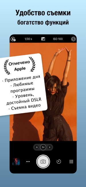 Приложение обладает интуитивно понятным интерфейсом, отличной эргономикой и красивыми фильтрами. Оно выглядит просто и изящно, но в то же время помогает iPhone получить полноценные возможности зеркальной фотокамеры. Пользователь может самостоятельно контролировать ISO, менять фокусировку и выдержку и создавать красивые художественные фотографии. Поддерживает RAW.