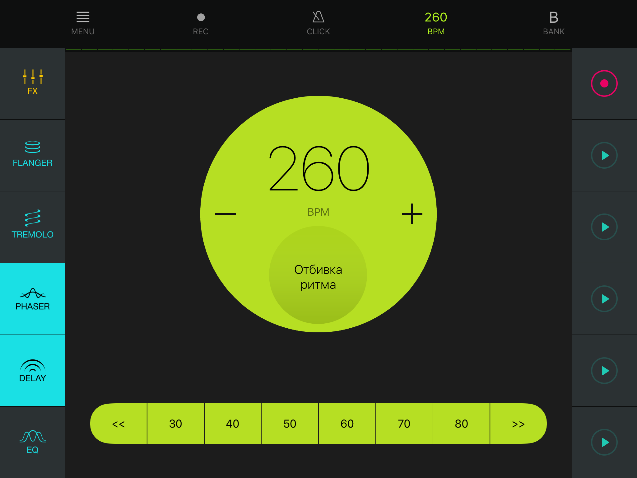 Loop ON — Приложение для записи музыки,звуков и собственных импровизаций.Это 12-дорожечный рекордер и луп-станция с аудио-эффектами.Нет ничего проще: просто нажмите кнопку и действуйте, приложение все сделает за вас.