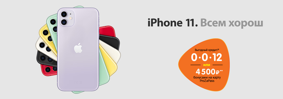Оформите беспроцентный кредит 1 на смартфоны Apple iPhone 11 из списка в любом магазине нашей сети или получите до 4 500 рублей 2 – выбор за вами!
