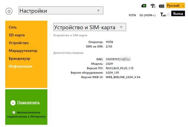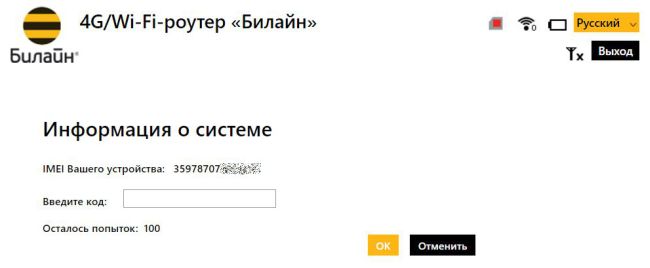 После ввода которого устройство начнет «понимать» SIM-карты любых операторов сотовой связи. Получить код разблокировки для Билайн L02H вы можете на нашей торговой площадке по ссылке ниже. Для получения кода вам потребуется IMEI вашего устройства (15-ти значное число), которое можно посмотреть в web-интерфейсе устройства.