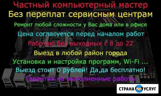 Компьютерный Мастер. Выезд на Дом. Прайс Честный и надежный Компьютерный Мастер может решить вашу проблему Звоните или пишите на СтранаУслуг.ру с 7-00 до 22-00 без выходных. Клиенты часто спрашивают: СКОЛЬКО СТОЯТ УСЛУГИ В компьютерной технике много тонкостей и нюансов, которые даже продвинутые.