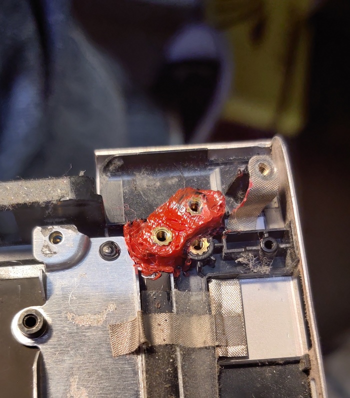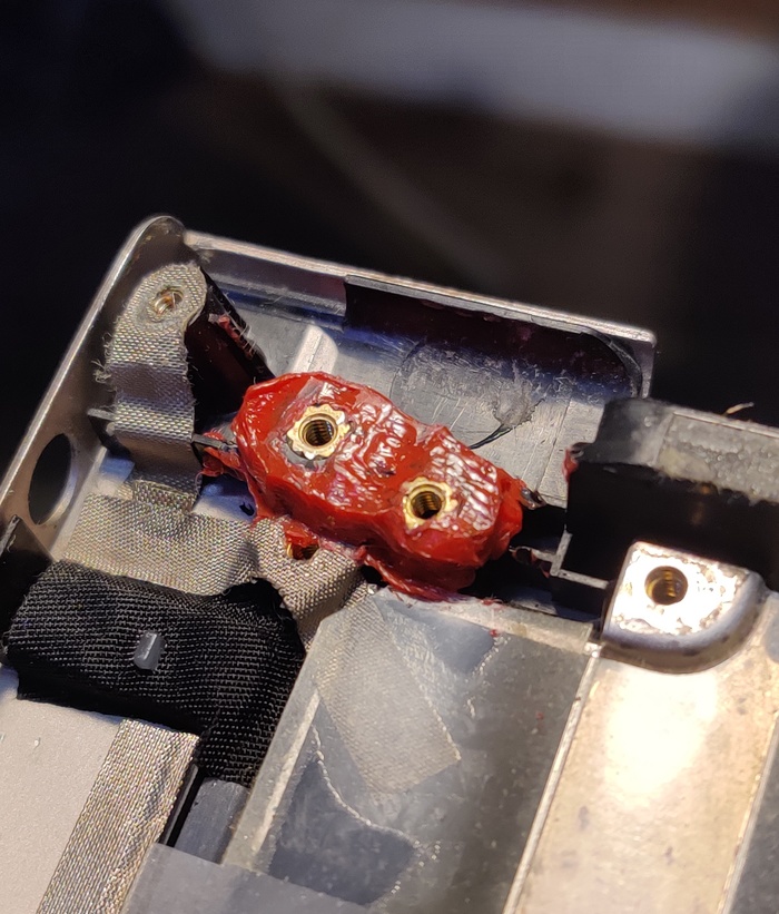И вот несколько дней назад корпус окончательно сломался в области петель, где были сколы душек крепления. Прозвонив местные ремонтные конторы, нужного корпуса не нашел, заказывать через интернет не стал. Решил, что ноутбук в первозданном виде свое отжил и нужно его реинкарнировать.