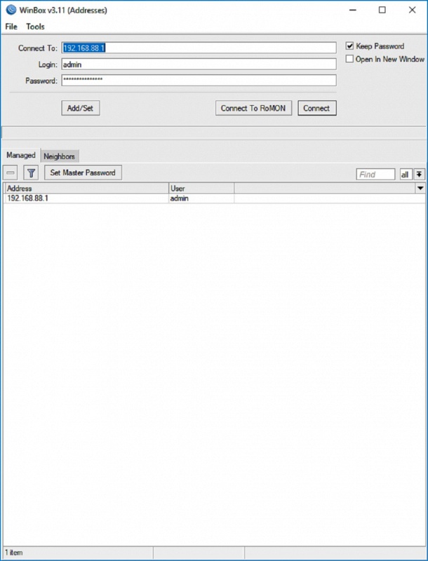 Для первичной настройки требуется подключиться к роутеру по кабелю в 2-5 порт Lan. Далее необходимо получить доступ к роутеру используя web интерфейс или стандартную утилиту Winbox, которую можно скачать с сайта производителя https://mikrotik.com/download. Я рекомендую использовать Winbox, так как он удобнее. Стандартный Ip адрес у микротика 192.168.88.1 ( в случае полного сброса устройства, доступ нему возможно получить только по кабелю используя WInbox и зная MAC адрес устройства).
