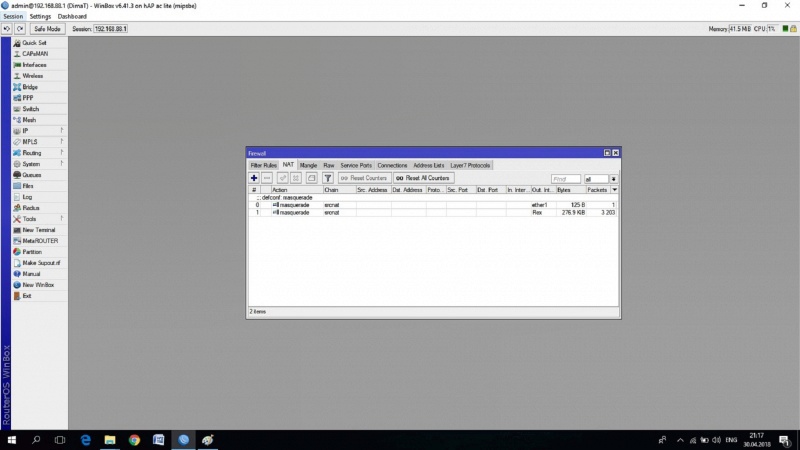 После данных манипуляций интернет появится на роутере, но не на ваших устройствах. Требуется зайти в раздел IP-FireWall, подраздел NAT и настроить «маскарад»