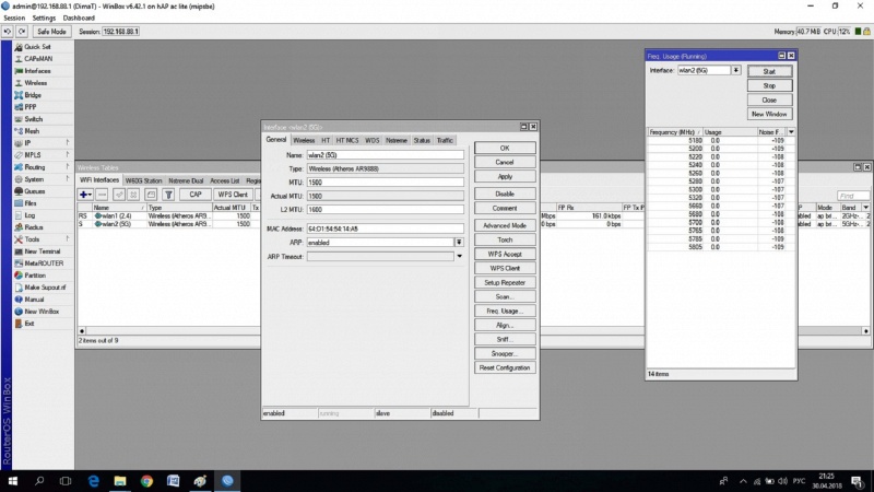 Одна из них это проверка загруженности частот (Подраздел Wireless). С ее помощью вы сможете выбрать оптимальную частоту при настройке Wi-Fi. На примере 5Ghz, все частоты свободны: