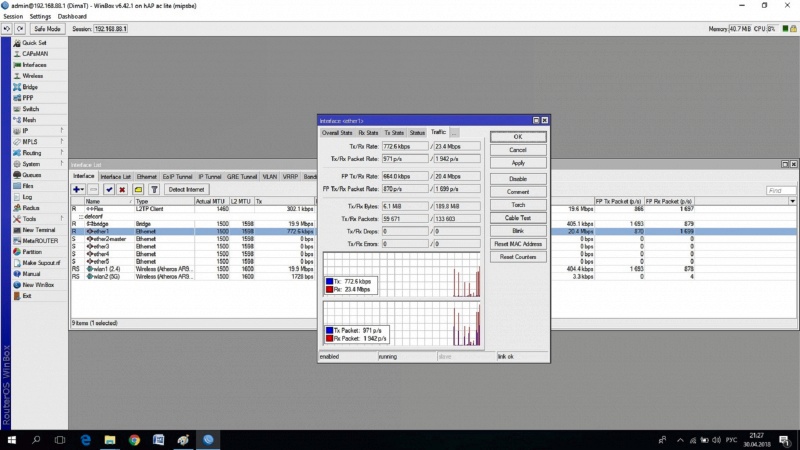 В подразделе Interfaces можно проверить загрузку ( по скорости) порта, потери пакетов, а так же проверить кабель на обрыв. Так же, в данном разделе ведется учет объема переданной/полученной информации: